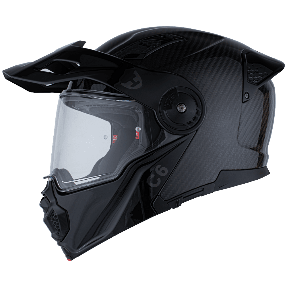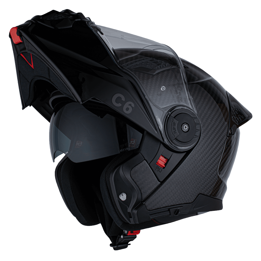 Our D.O.T. Daytona C6 Modular Helmet, With Inner Anti-Scratch Retractable Smoke Shield, In Carbon Fiber, Meets And Exceeds D.O.T. FMVSS 218 And ECE 22R06 Standards.  With 2 Different Shell Sizes, You're Sure To Get That Proportionate Fit!!  Features A Dual Shield System; Outer Anti-Scratch Clear Shield With Pinlock 120 Lens (Anti-Fog) And Inner Anti-Scratch Retractable Smoke Shield.  Also Has A Quick Release Lock Retention System; One Finger Release Lever For Easy Detachment, Adjustable Chin And Forehead Ventilation, A Removable Aerodynamic Visor And A Removable, Hand Washable Interior (Moisture Wicking Fabric). Bluetooth Compatible.  Free Draw String Bag Included.  Sizes Range From XS-2XL.